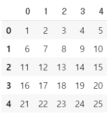 df2 = pd.DataFrame(np.arange(1, 26).reshape(5, 5))
