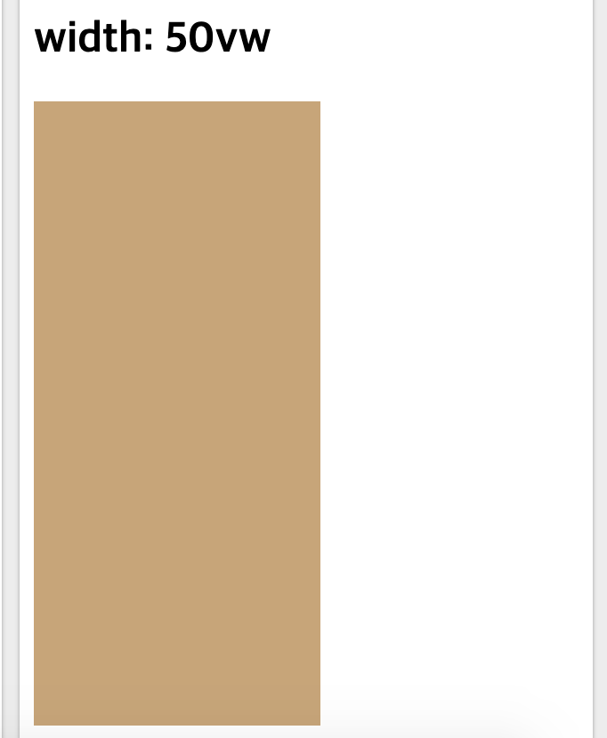 div{ height:50vh; width:100vw; }