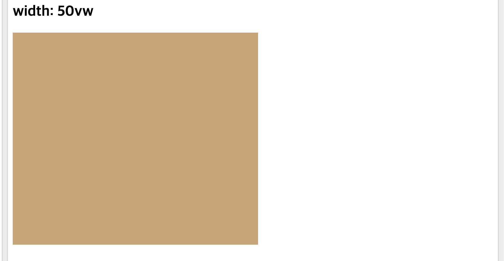 vh와 vw는 각각 verticah height, vertical width의 약자입니다. 이것들은 뷰포트(화면의 크기)의 높이와 너비에 비례합니다. 이 단위는 반응형 페이지를 만들 때 아주아주 유용하게 사용될 수 있습니다.