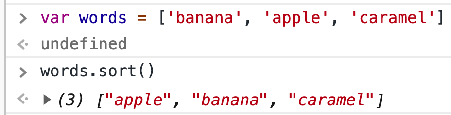 console.log(words.sort()) // 오름차순 정렬