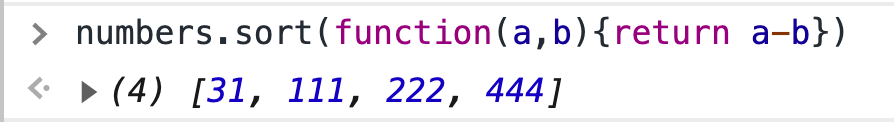 만약 내가 숫자를 숫자답게 정렬하고 싶다면 어떻게 해야할까? 바로 함수를 사용해야 한다! 바로 요렇게!!!! 만약 reverse()를 사용하고 싶다면 numbers.sort(function(a, b){return b-a}) 요렇게 사용해주면 된다. ES6 들어가면서 뭔가 바뀌었을지도 모른다...